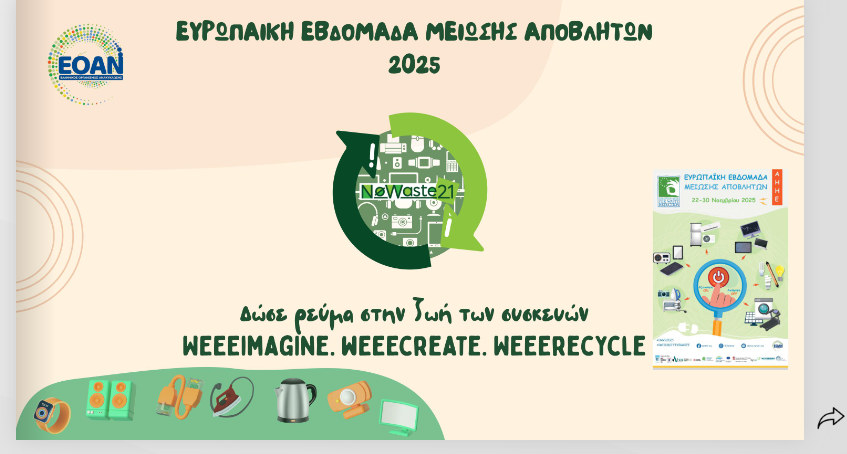 Η ΝοWaste21 συμμετείχε στην Ευρωπαϊκή Εβδομάδα Μείωσης Αποβλήτων με δράσεις που είχαν στόχο την πρόληψη και μείωση αποβλήτων ηλεκτρικού και ηλεκτρονικού εξοπλισμού (AHHE).